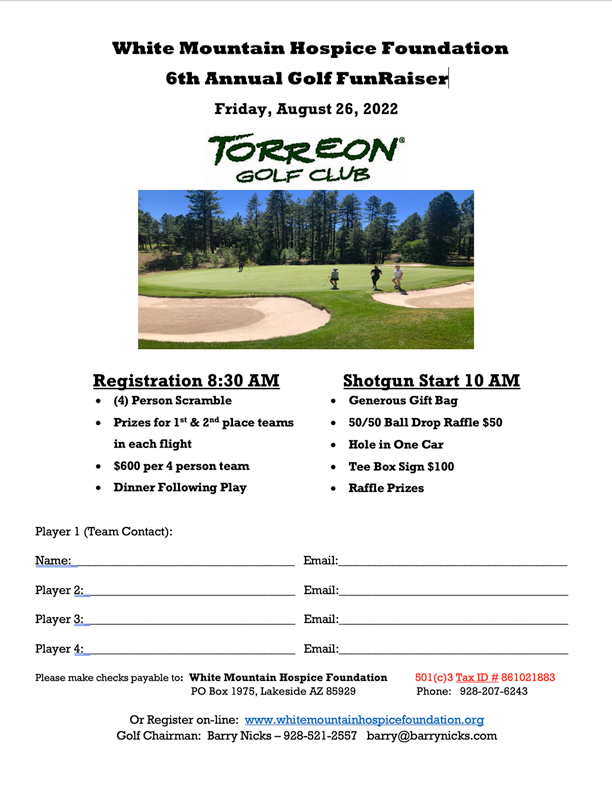 - Make a Gift of Remembrance: Donations are a thoughtful memorial or way to honor someone on special occasions such as birthdays, anniversaries, or holidays. These gifts are a gratifying way for individuals, organizations, businesses, and groups to pay tribute to someone while supporting the mission of the White Mountain Hospice Foundation. Acknowledgments are sent and every gift is tax-deductible.